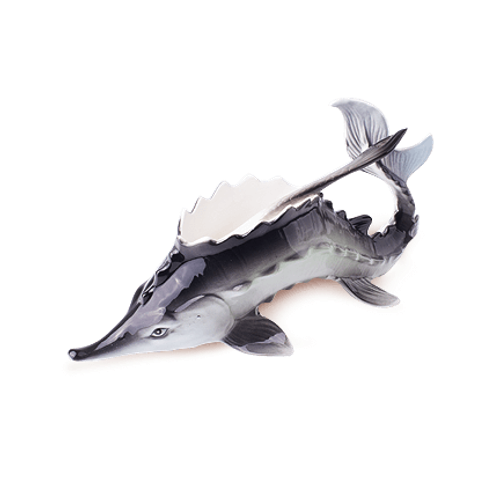 Фарфоровая икорница в виде осетра с ложечкой в комплекте.